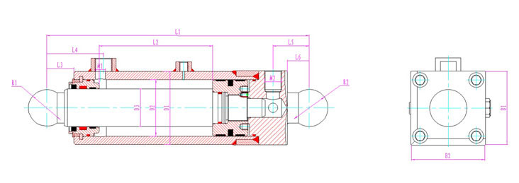 | 産品(pin)型号 | 行(hang)程 | 安裝(zhuang)距 | 額定(dìng)壓力 | L1 | L2 | L3 | L4 | L5 | L6 | D1 | D2 | D3 | R1 | R2 | B1 | B2 | M1 | M2 |