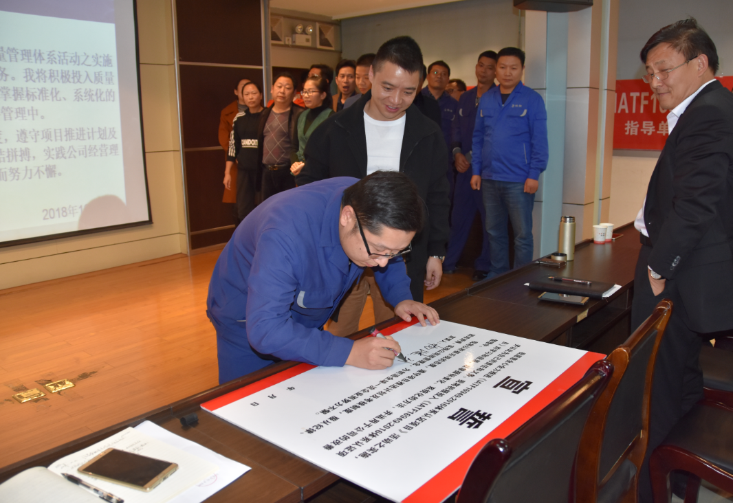 會上,質(zhì)量管理(lǐ)體系推(tuī)進小組(zu)成員進(jìn)行了集(jí)體宣誓(shì)并現場(chang)簽名,充(chong)分展示(shi)了開展(zhǎn)《質量管(guan)理體系(xi)提升》項(xiàng)目工作(zuò)的決心(xīn)。相信在(zài)公司上(shàng)下一心(xin)、積極努(nǔ)力下,湖(hú)北龙岩(yan)浩发机(jī)械制造(zào)有限责(ze)任公司(sī)(4G网站)一(yi)定能真(zhēn)正實現(xiàn)質量管(guǎn)理體系(xì)提升,将(jiāng)IATF16949:2016質量管(guan)理體系(xi)在企業(ye)内部有(you)效運行(háng),為企業(ye)持續健(jian)康發展(zhan)保駕護(hù)航!